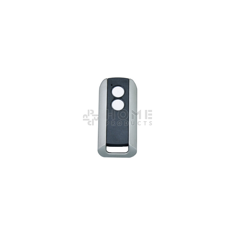 Prastel SLIM2E+ 2 handzender uitgevoerd in mat zwart met metaalcontouren en witte knoppen. Standaard voorzien van 2 kanalen. (AES128)